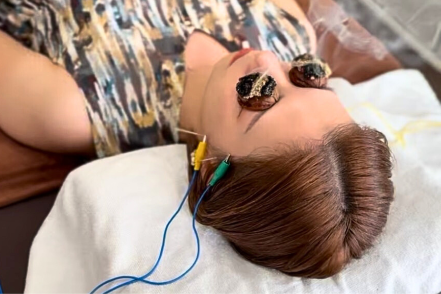 くるみ灸と電気鍼によるTRY独自の施術で、目の奥のモヤモヤ感や重だるさを集中的にケア。