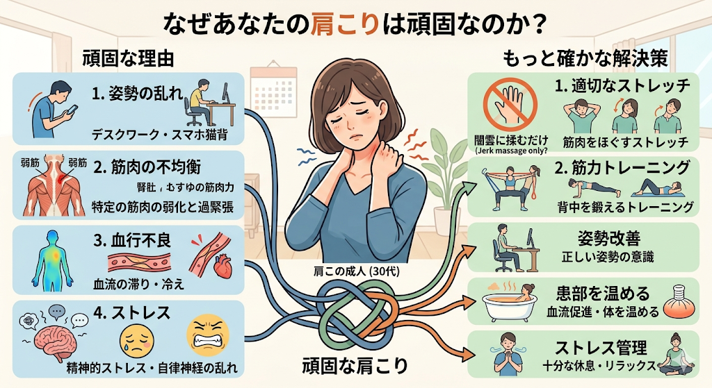 「なぜ自分の肩こりはこんなに頑固なのか」という理由を知っておくだけでも、闇雲に揉みほぐす以外の、もっと確かな解決策が見つかるはずです。