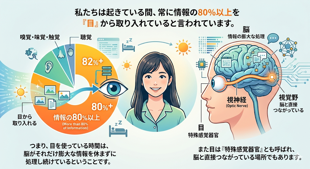 私たちは起きている間、常に情報の80%以上を「目」から取り入れていると言われています。